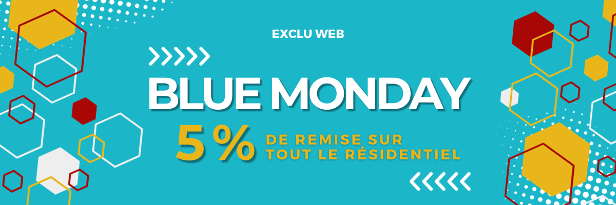 Avec notre offre exceptionnelle, nous vous invitons à contrer le blues du lundi en vous offrant 5% de remise immédiate sur tout le résidentiel de notre E-SHOP, en utilisant le code promo : BLUEMONDAY