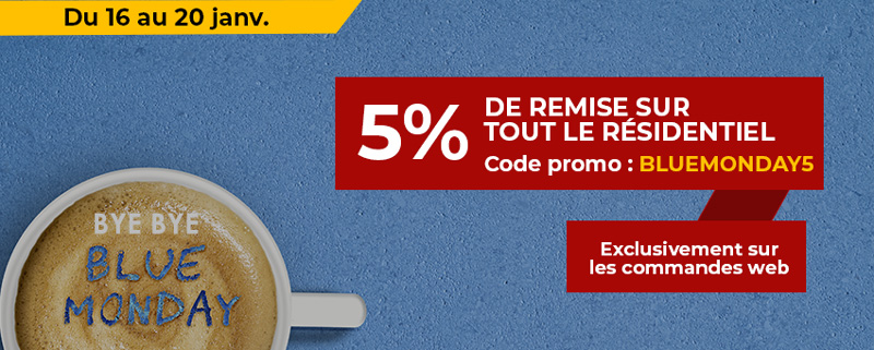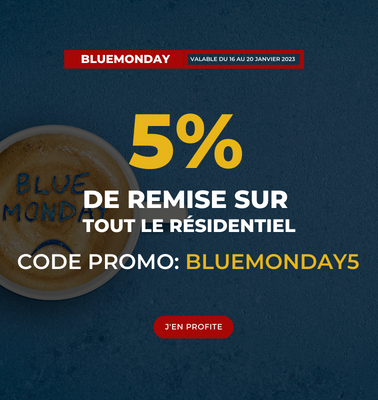 5% DE REMISE* IMMÉDIATE SUR TOUT LE RÉSIDENTIEL DE L'E-SHOP avec le code promo : BLUEMONDAY5