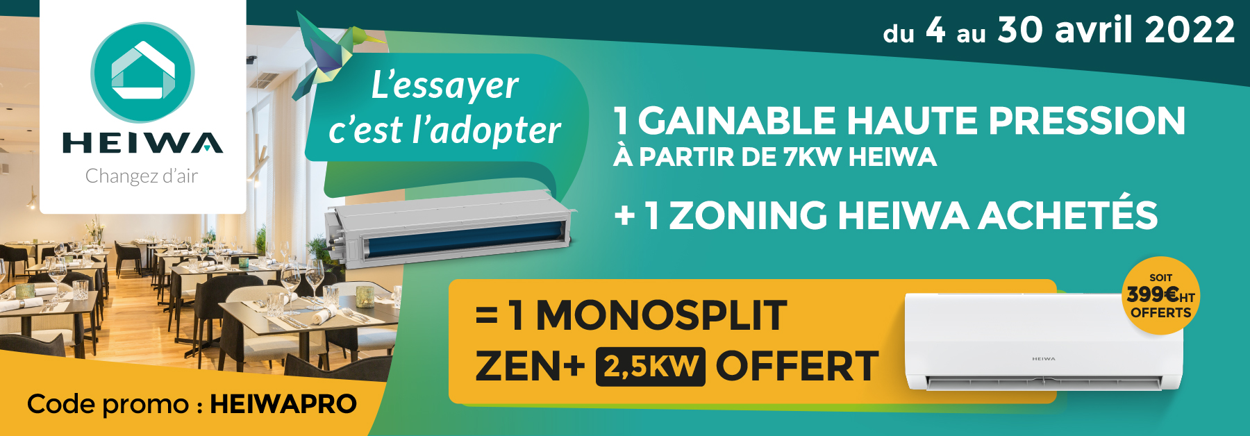 - Bon plan Heiwa : un mono-split mural Zen+ 2,5kW offert !