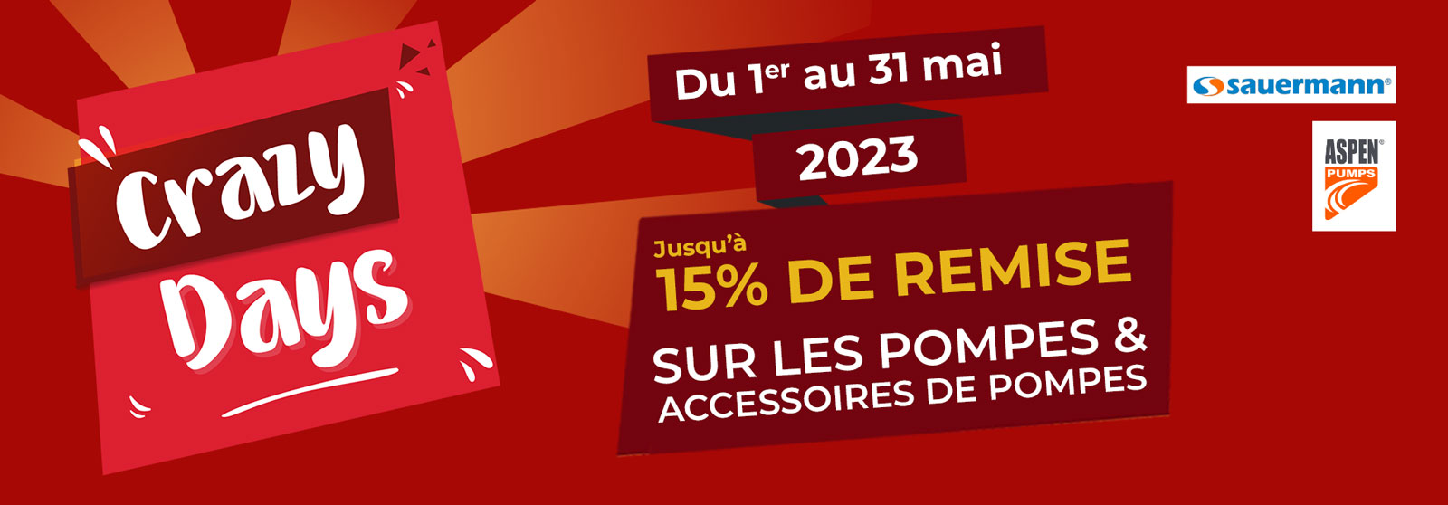 En mai, profitez d'une remise sur les marques Aspen et Sauermann avec une crazy days spéciale "condensats" : jusqu'à 15% de remise immédiate sur les gammes de pompes de relevage et d'accessoires dédiés à l'installation de pompe à chaleur réversible.