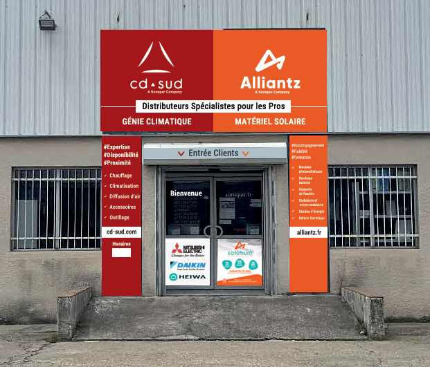 Filiales du groupe Sonepar, Alliantz, spécialiste de l’énergie solaire et CD SUD spécialiste du Génie Climatique, vous accueillent dans leur nouvelle agence commune à partir du lundi 20 mai 2024. Ce déménagement marque une évolution significative dans notre engagement à vous fournir des solutions innovantes et un service de qualité supérieure.