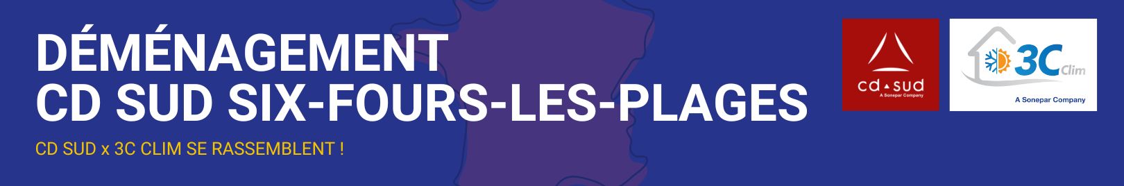 Nous avons le plaisir de vous annoncer une étape passionnante dans notre parcours : le déménagement de notre agence CD SUD Six Fours Les Plages vers les locaux de 3C CLIM à Six Fours Les Plages, à partir du vendredi 5 juillet 2024. Cette initiative s'inscrit dans le cadre du rapprochement entre CD SUD et 3C CLIM pour former le Réseau Spécialiste du Génie Climatique, votre distributeur de référence. Ce déménagement illustre notre engagement à vous offrir des solutions innovantes et un service de qualité supérieure.