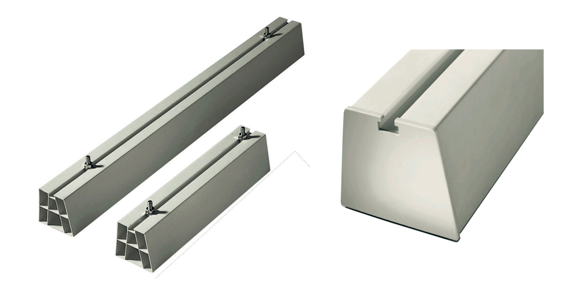 Réalisés en PVC rigide couleur ivoire, ces supports amortissent les vibrations et la transmission du bruit grâce à leurs alvéoles. Traités anti-UV, ils supportent une charge de 300 kg maximum répartie sur les 2 pieds. Ils sont livrés filmés avec leur visserie (écrous, rondelles, boulons 8 mm).