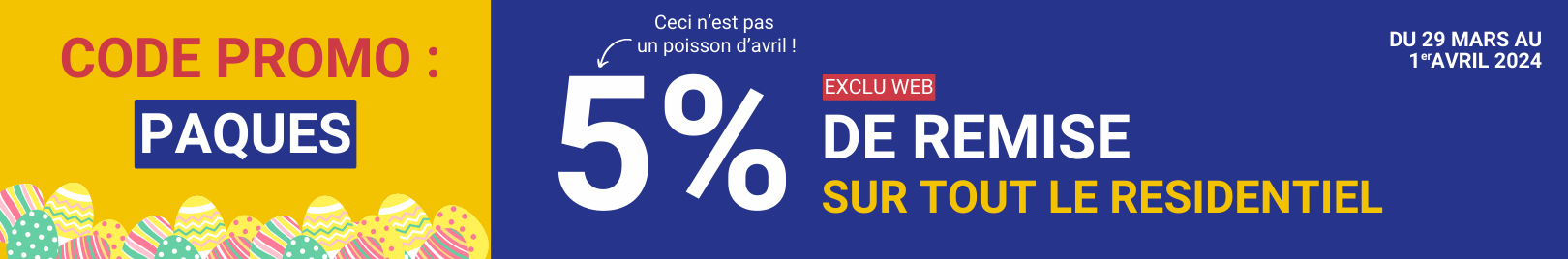 Exclu web spéciale Paques : 5% de remise sur TOUT le résidentiel !