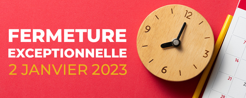 Nos agences CD SUD seront exceptionnellement fermées le lundi 2 janvier 2023 en vue d'une optimisation de notre réseau de logistique interne.