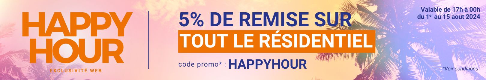 Profitez de l'exclusivité web : HAPPYHOUR - 5% de remise sur tout le résidentiel de 17h à 00h !