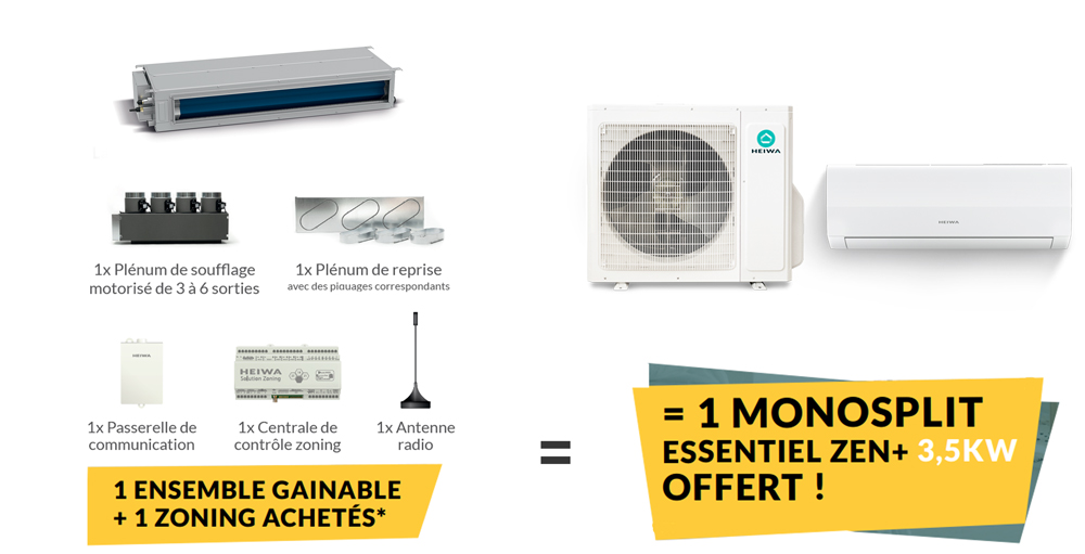 Offre valable sur les ensembles gainables Heiwa PRO Essentiel Zen à partir du 7,1kW dans la limite des stocks disponibles du 1er septembre au 31 octobre 2021.