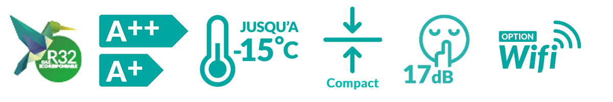 Les pompes à chaleur air/air Essentiel Zen 2 Heiwa fonctionnent au fluide réfrigérant écologique R32, alliant confort et performance.