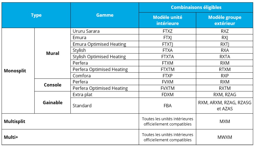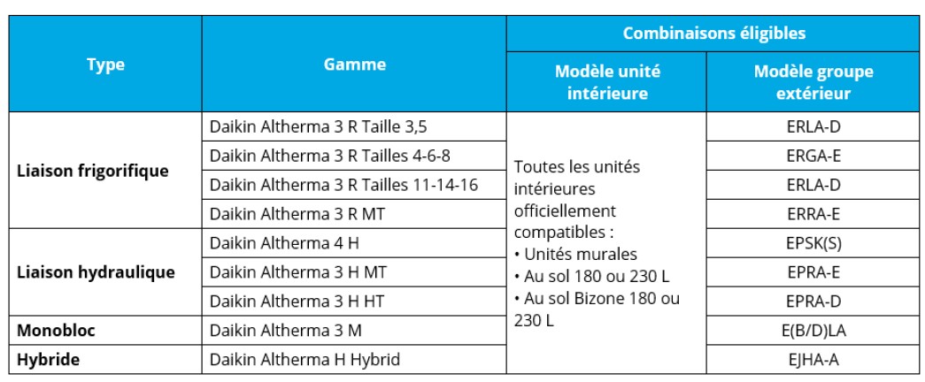 Les équipements Daikin concernés