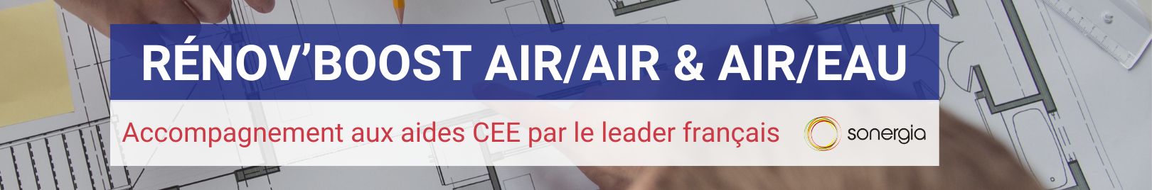 Grâce à Rénov'Boost Air/Eau et Rénov'Boost Air/Air, Sonergia accompagne tous les artisans installateurs et clients particuliers pour bénéficier des aides CEE.