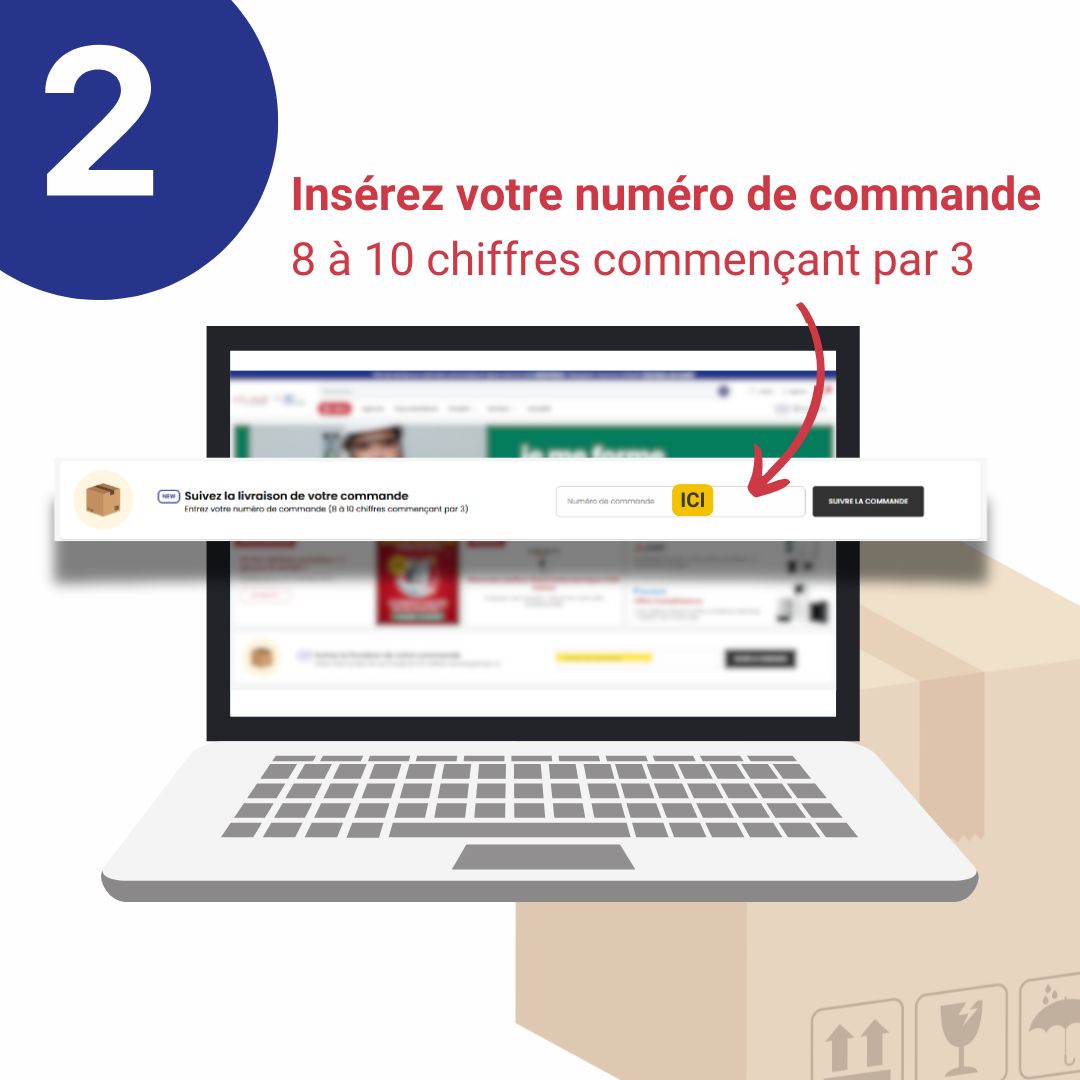 2️⃣ Dans la section dédiée au suivi, insérez votre numéro de commande (8 ou 10 chiffres commençant par 3).