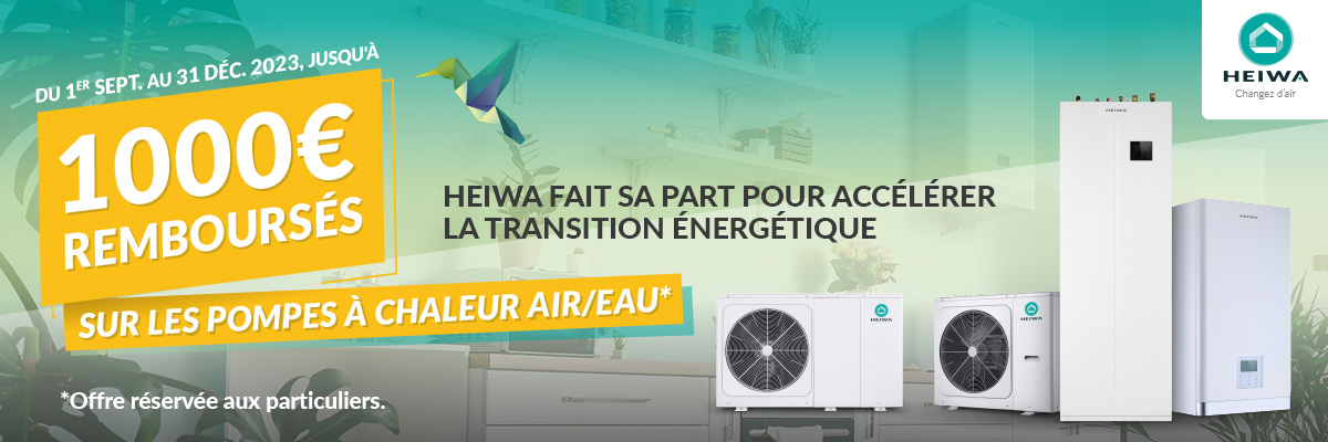 - Offre de remboursement Heiwa : jusqu'à 1000€ remboursés sur les achats de PAC Air/Eau !
