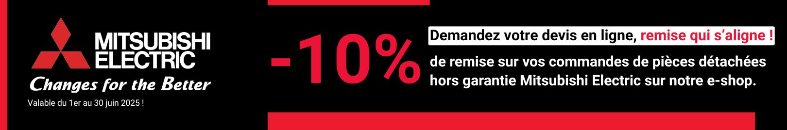 10% de remise sur toutes vos commandes de pièces détachées hors garantie Mitsubishi Electric