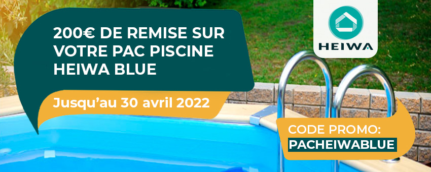 Jusqu'au 30 avril, bénéficiez de 200€ de remise sur votre PAC PISCINE HEIWA BLUE !