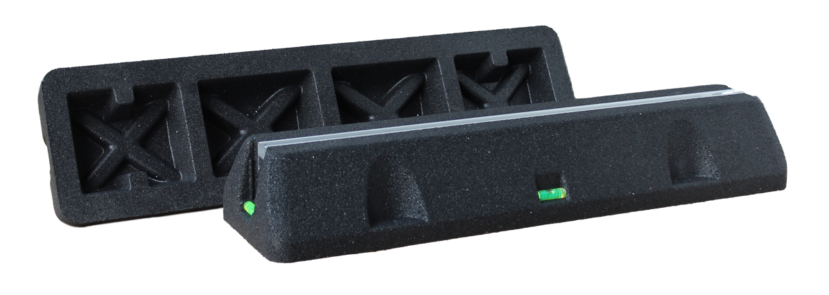 Fabriqués à base de pneus recyclés compactés, ils sont équipés d'une barre d'acier galvanisé moulée dans la masse et de niveaux à bulle. Livrés avec 4 écrous prisonniers, ils résistent aux UV et répondent aux normes européennes PR EN 1177. |