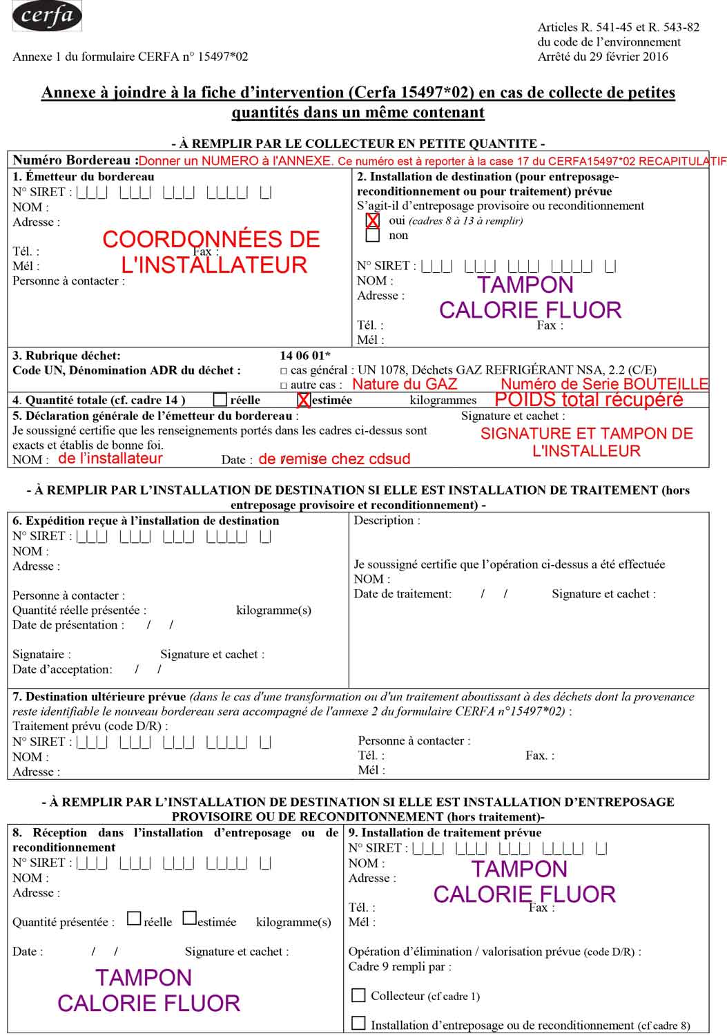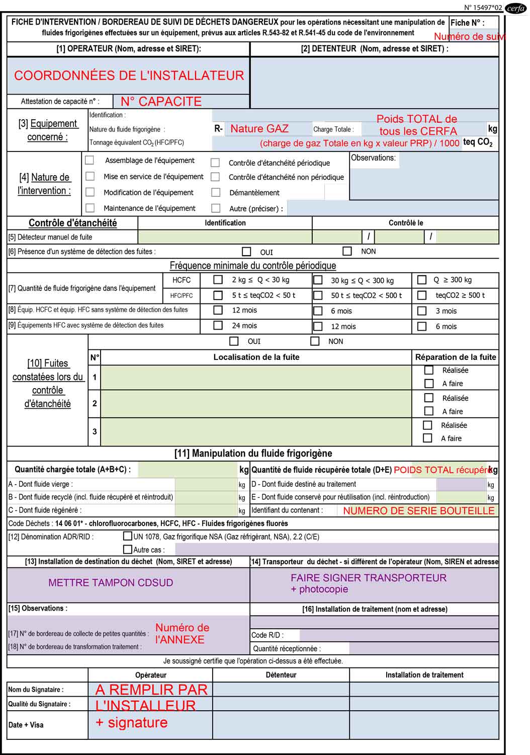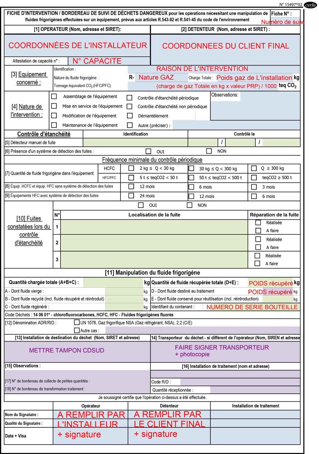 Dans ce cas précis, vous devez nous restituer avec la bouteille de gaz, l'original du CERFA 15947*02 de l'intervention réalisée chez votre client.