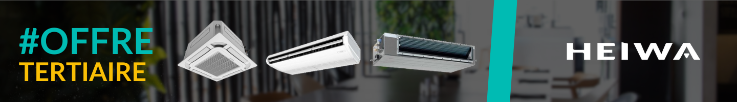 Découvrez ici les offres tertiaire Heiwa : Vos ensembles cassettes, plafonniers et gainables, l'essentiel pour vos chantiers !